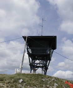 Mât haubané sur vigie de surveillance incendie (Ardèche)